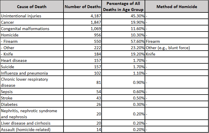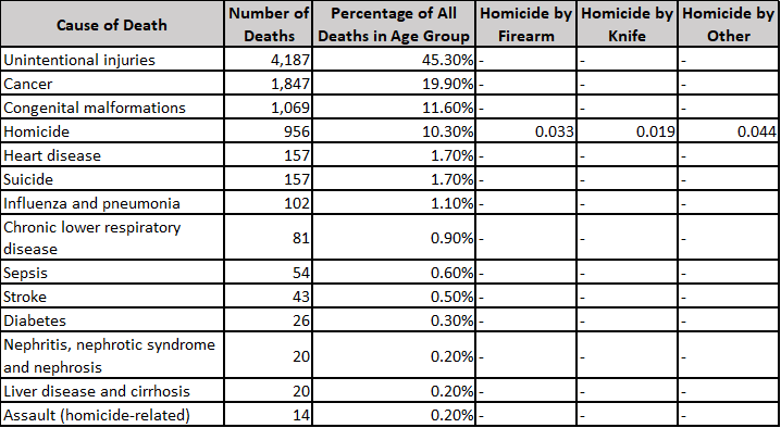 If we are focused on homicide, particularly with guns, for kids sixteen years old and under, then we find that this accounts for only between 3-5% of child deaths.