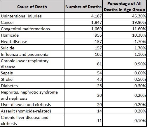 Yes, based on the data provided, those conclusions would be approximately correct. It is important to note that the data only covers a specific time frame and may not represent the current state of child mortality in the United States. Additionally, it is important to consider that every child's life lost is a tragedy regardless of the cause.